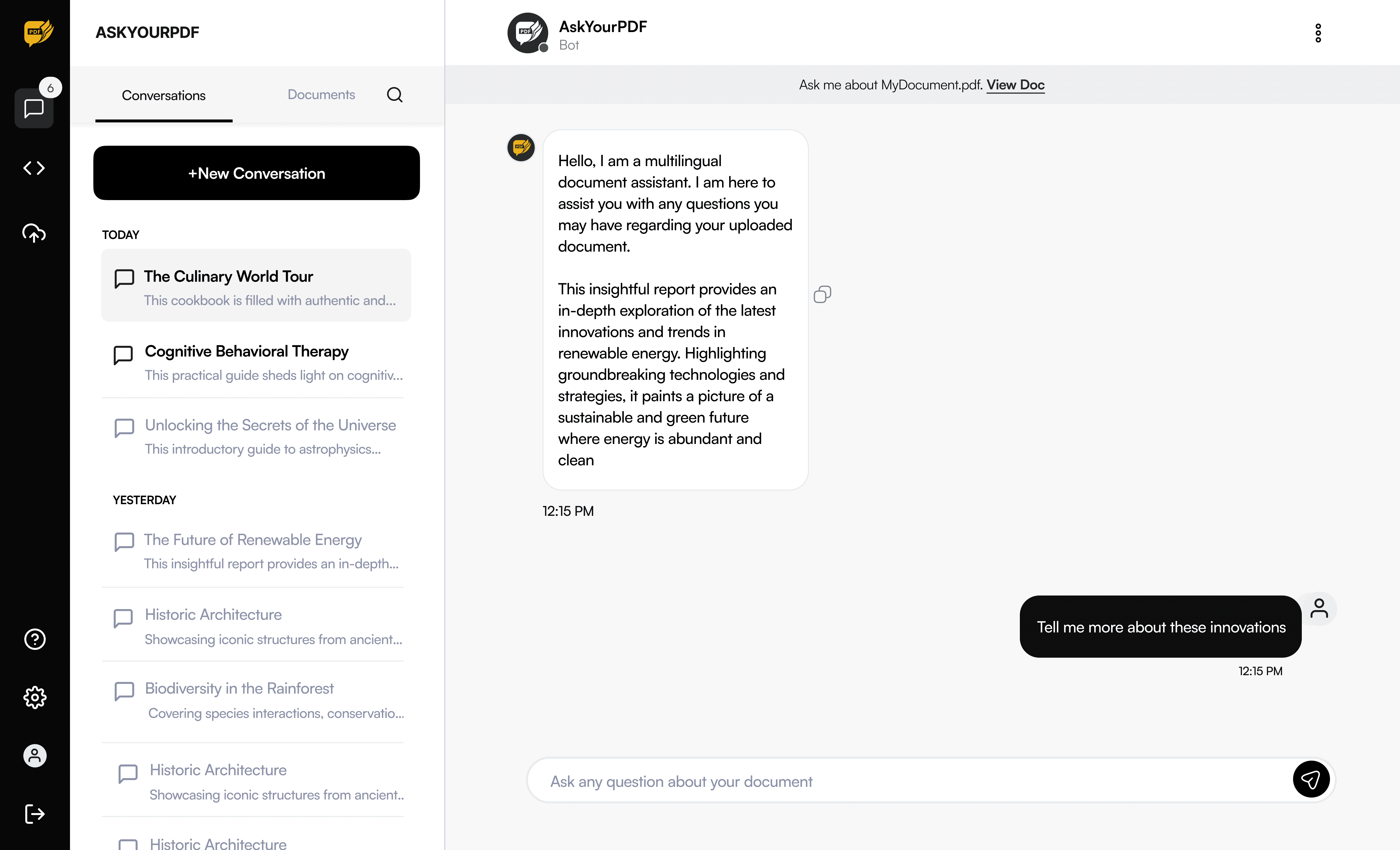 I started with thorough user research to understand how people were interacting with their platform. By analyzing competitor platforms, I identified key areas where I could improve the experience. The goal was to make PDF interactions feel as natural as having a conversation with a knowledgeable colleague.