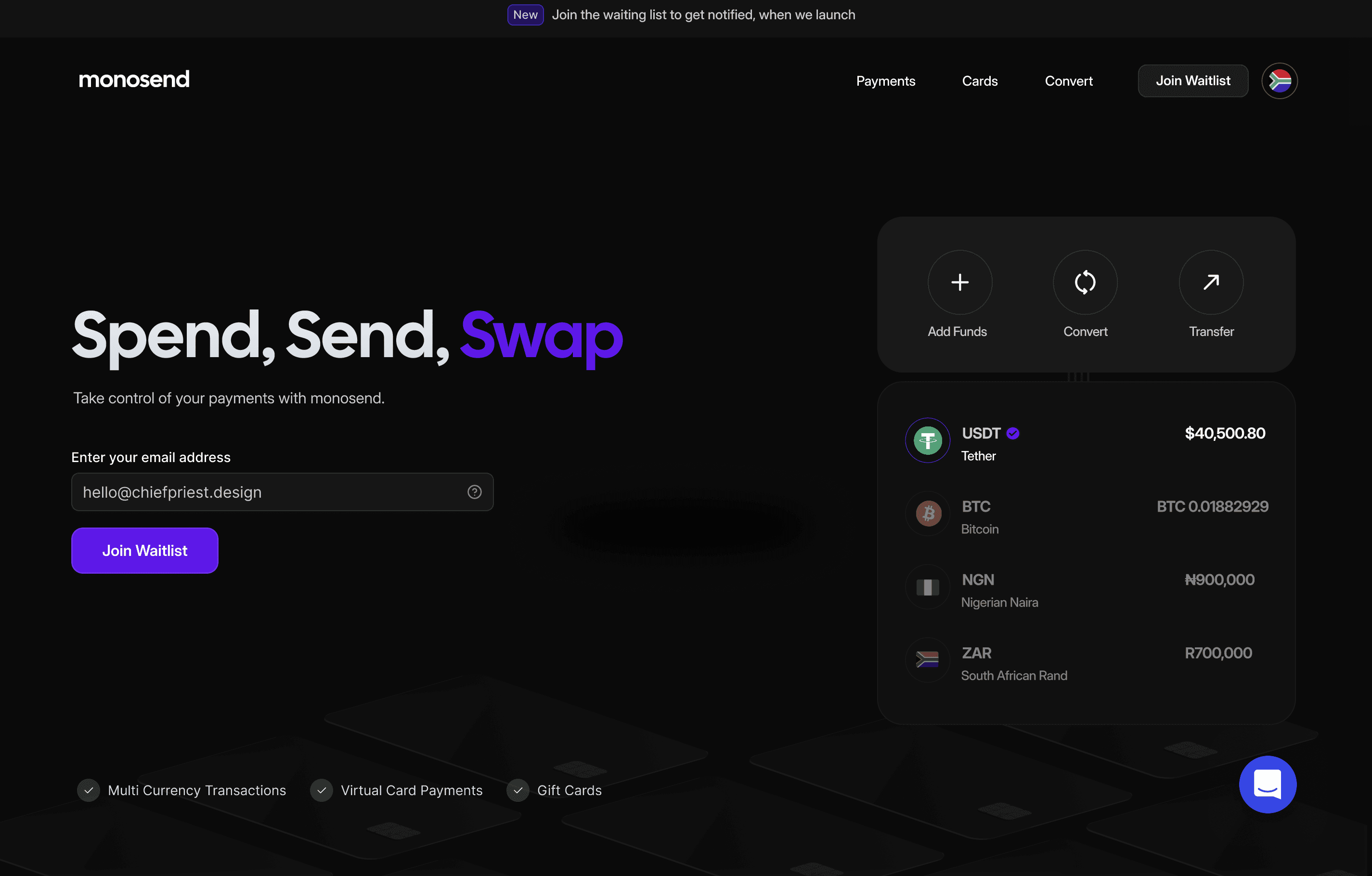 In 2024, I collaborated with Monosend to design a cross-border payment platform that combined the familiar reliability of traditional finance with the flexibility of crypto. Having personally experienced the frustration of sending money across African countries and exploring crypto transfers, I knew how best to tackle it.