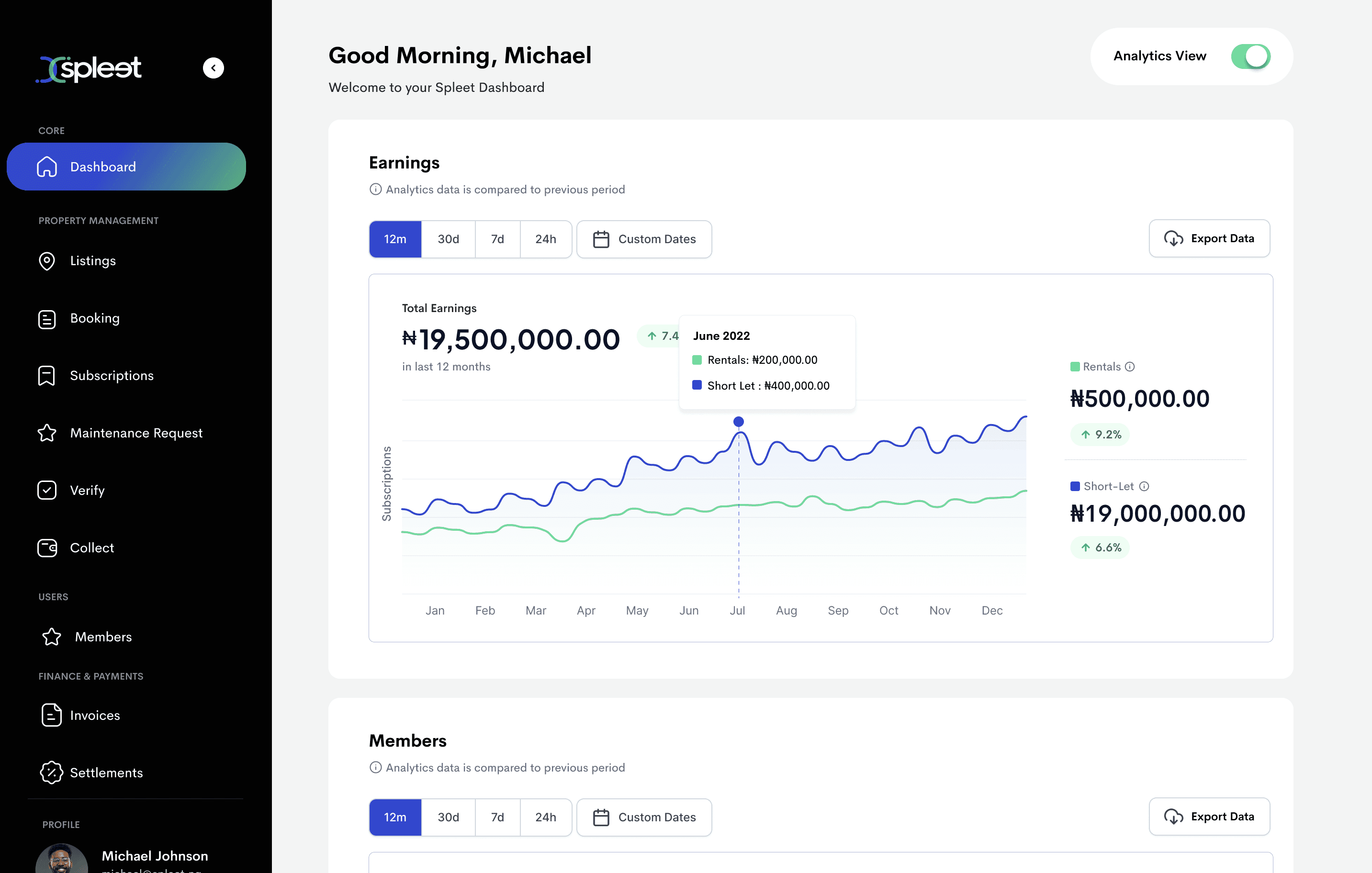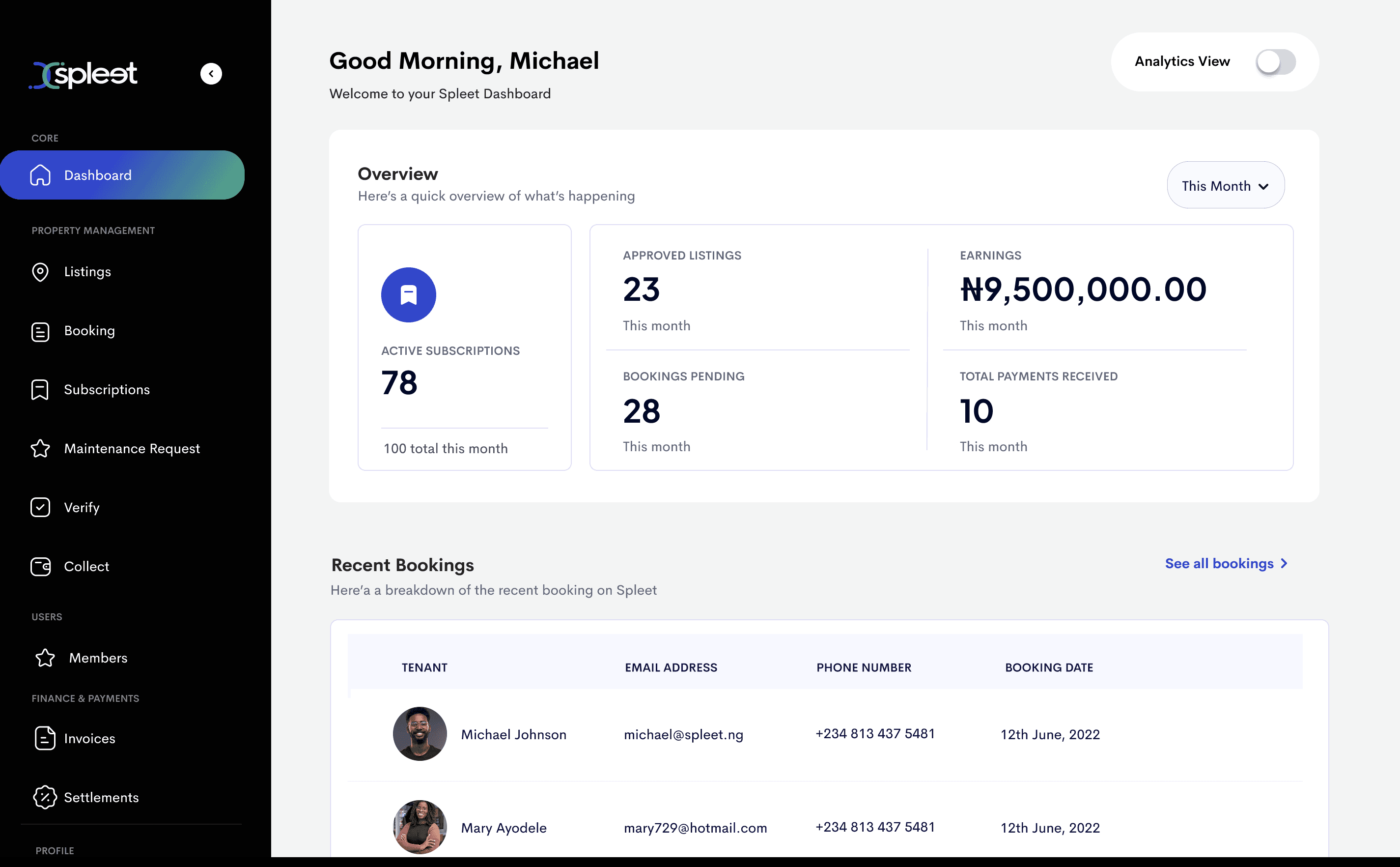 Big Picture View: Gave the Spleet team a dashboard to manage everything—users, properties, payments, and more.