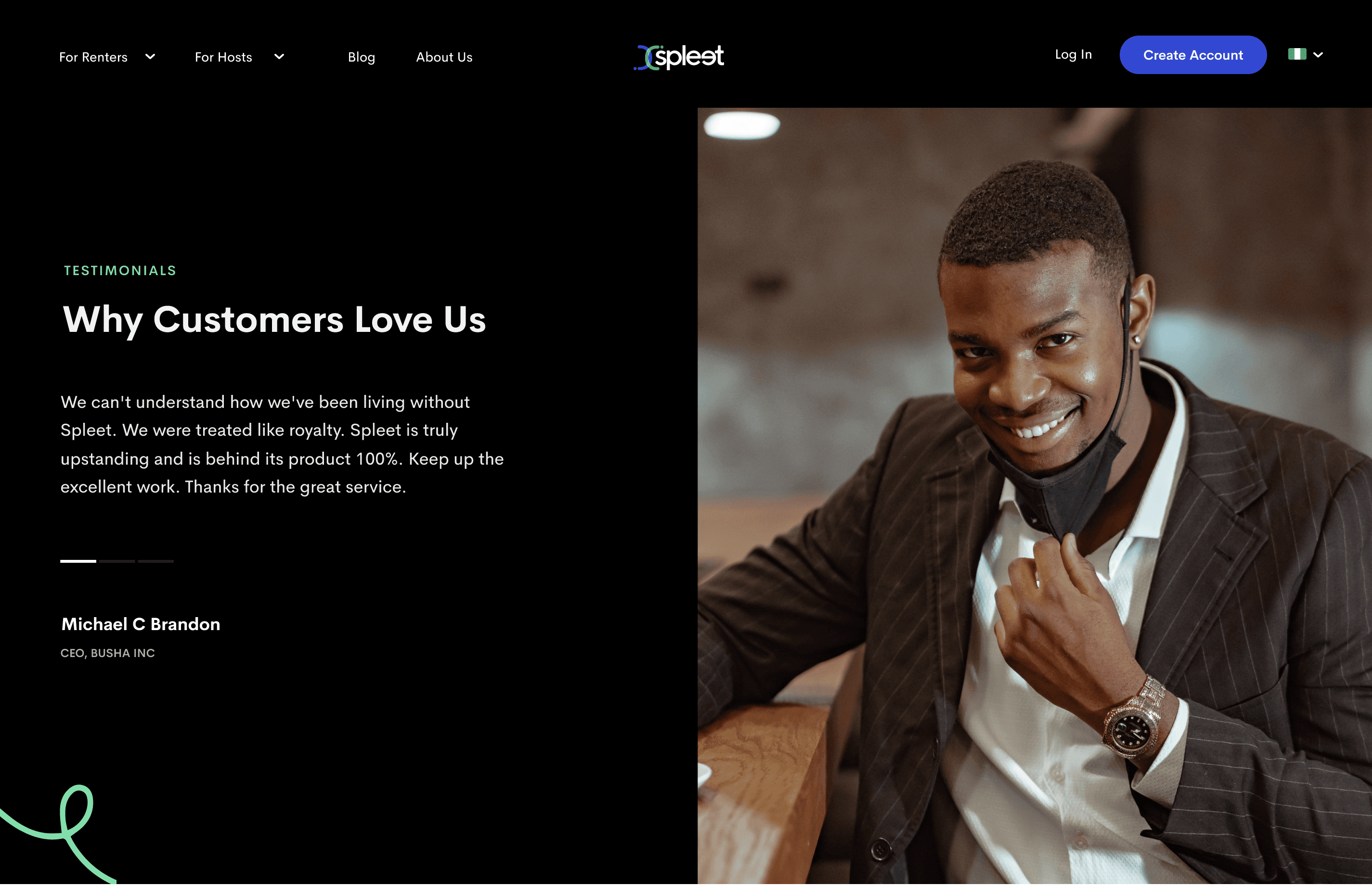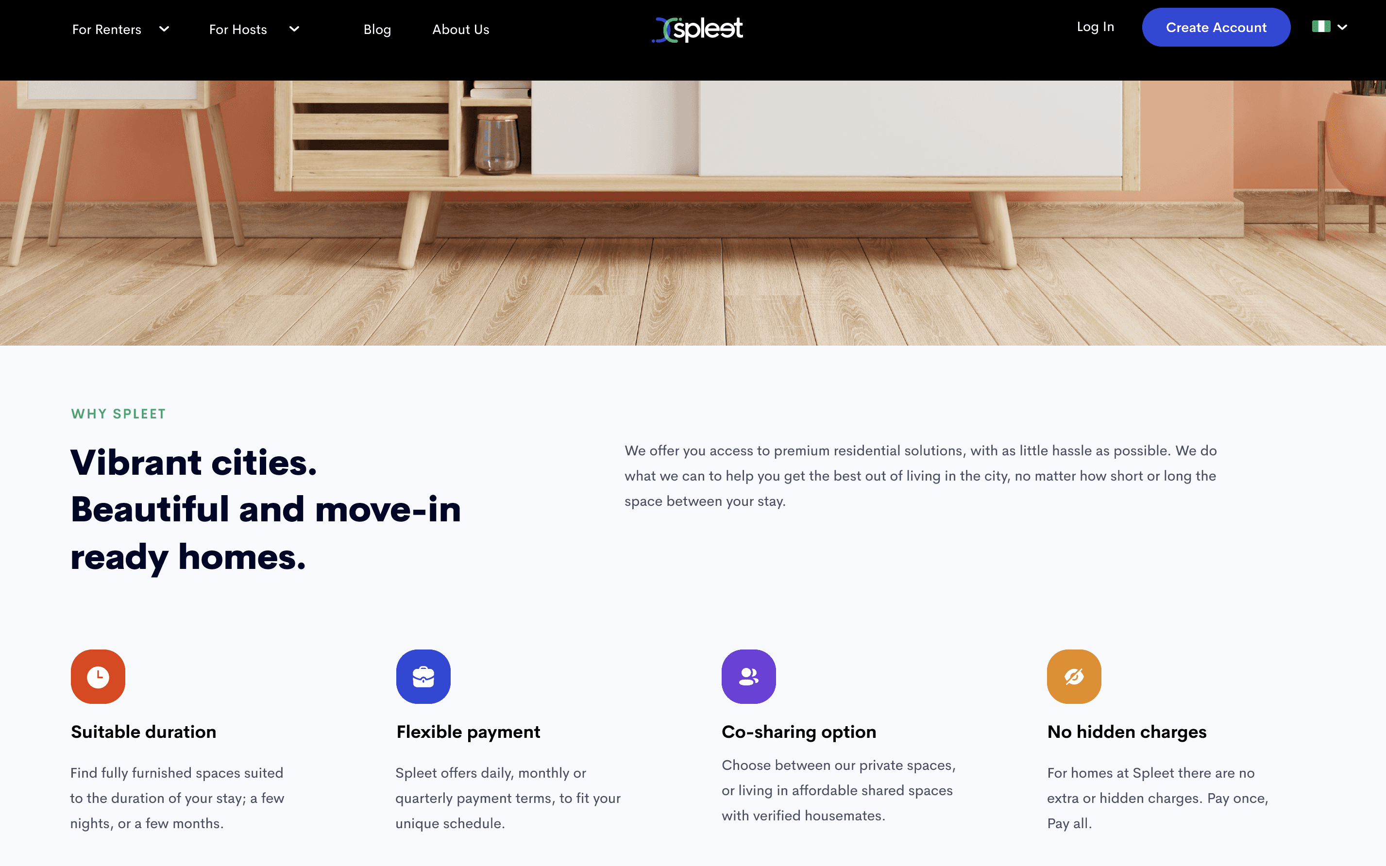 Designed a new homepage with a clean, friendly vibe to showcase what Spleet offers—flexible rent, property management, and verified tenants.