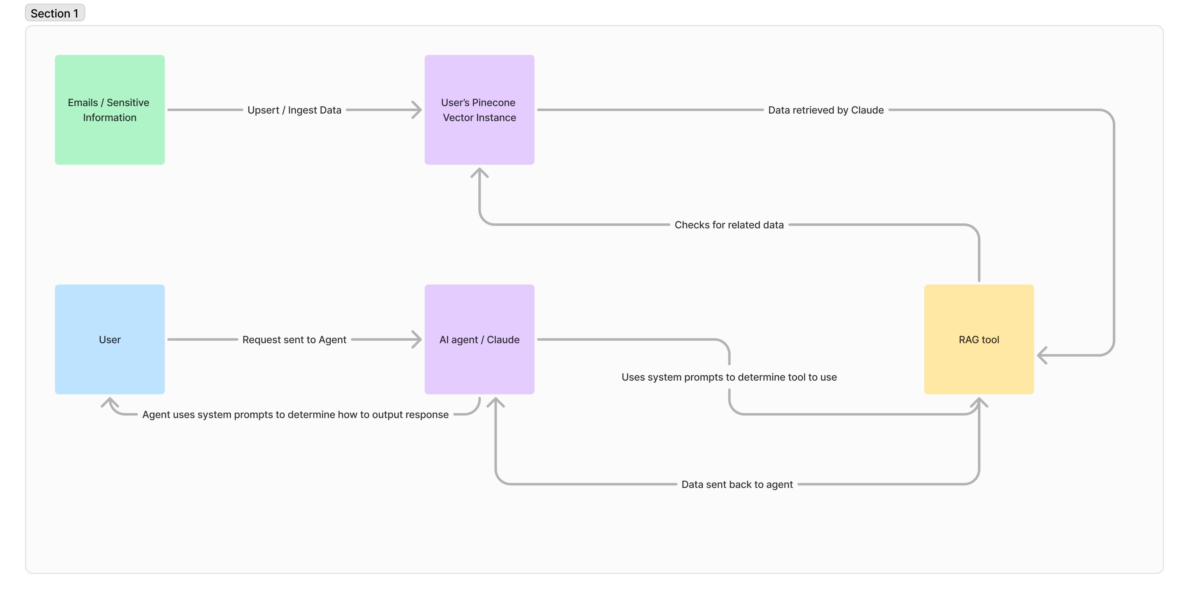 All emails are indexed and sent to your personal vector database - right now I'm using pinecone along with Claude Haiku via Openrouter for the RAG setup. This essentially makes it easy for the agents to search your emails and is also privacy first so your private emails are safe. However I'm looking to update the vector db setup to use a local index called Objectbox so it runs locally.
